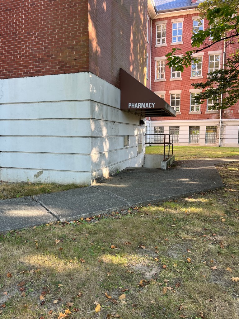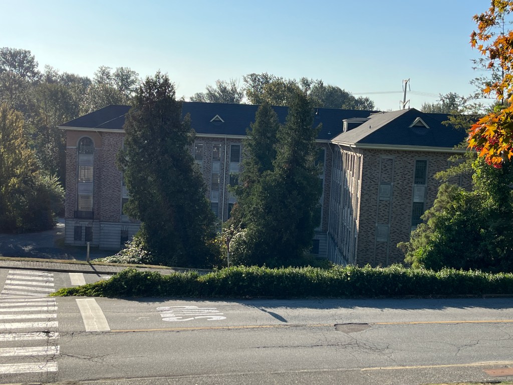 When you get off at the bus stop, if you look up the hill, you can see the East Lawn Building, better known to Switches as General Alder’s Office.
