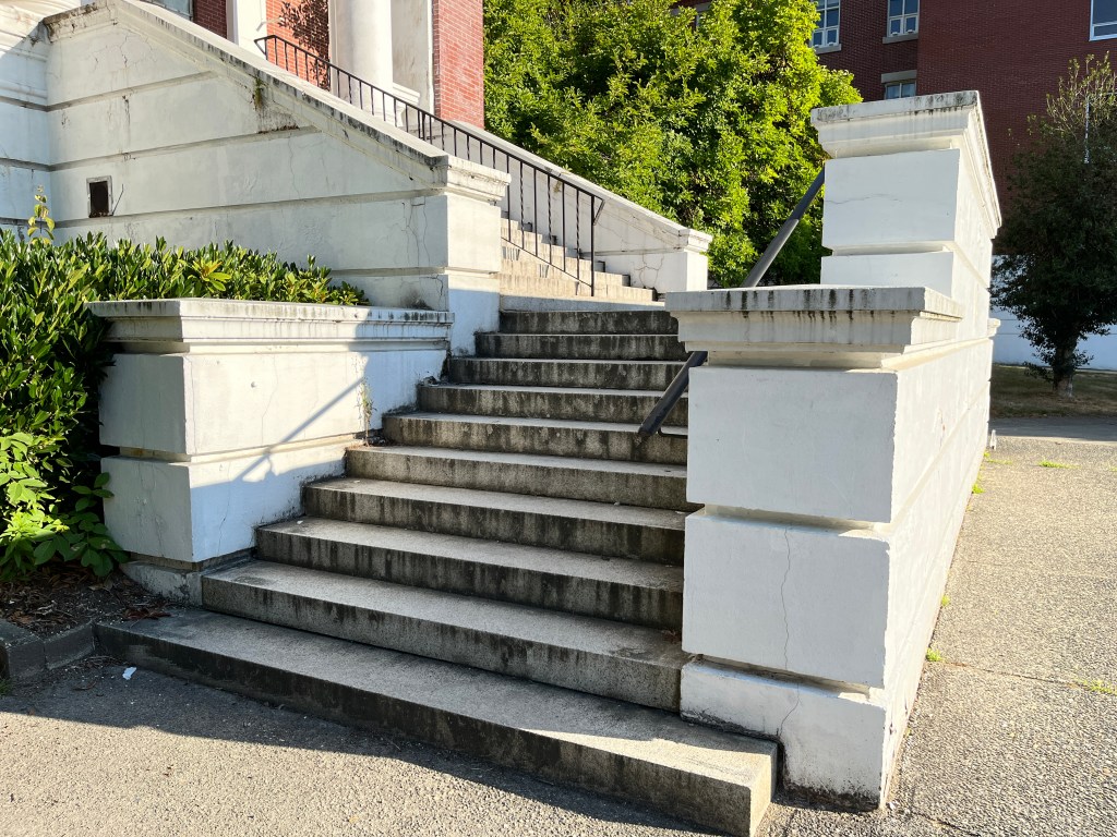 You can’t go into the buildings. There is apparently a lot of lead and asbestos in there and the BC Housing is still deciding what to do with the buildings. But you can go on the steps. I do have to say that the buildings could do with a bit of TLC.