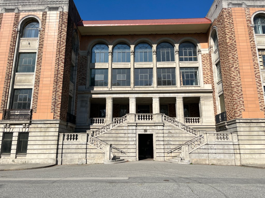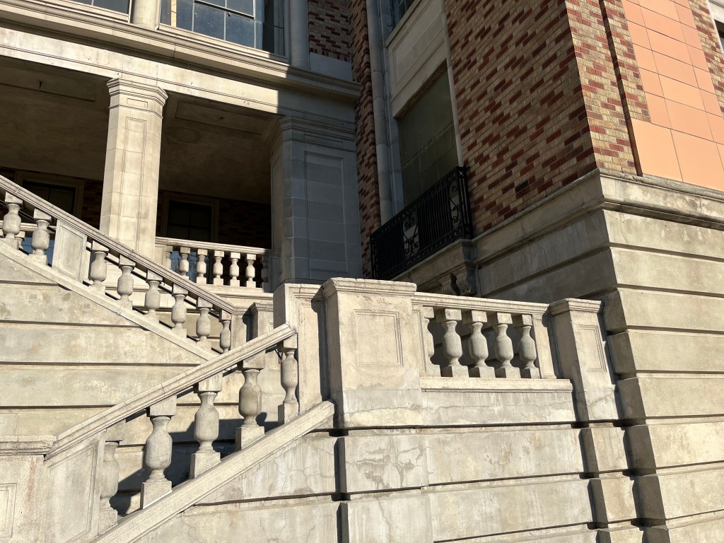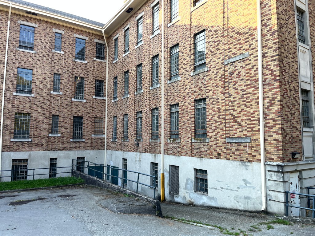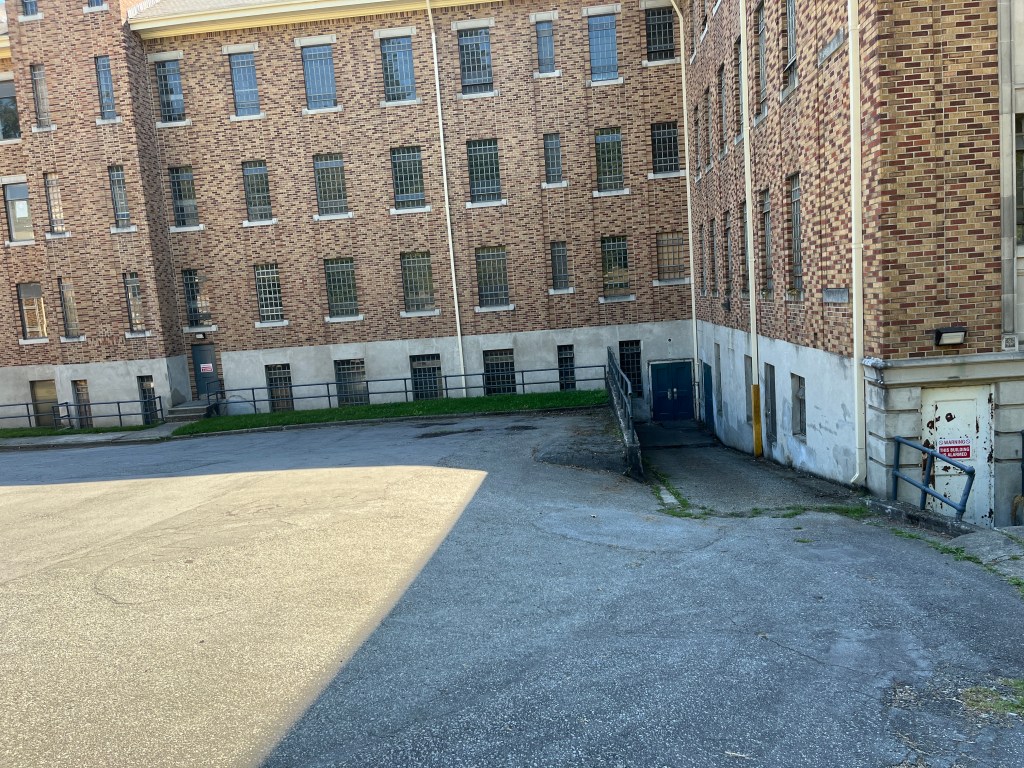 This is the big building at the bottom of the hill. Of the 3 buildings, it is the one in the best condition. They did some of the season 1 filming in there, so I assume it is not riddled with lead and asbestos. I was talking to one of the locals who said that for a long time this was used to house tuberculosis patients, keeping them separate from the mental patients in the central lawn buildings.