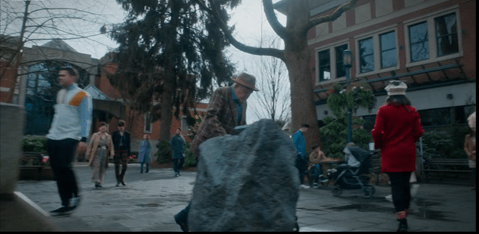 In real life this is in Port Coquitlam at City Hall, seen in the background of all three photos. When I was researching this location, I assumed from the map, that they filmed south of the City Hall. The north side was listed as Veterans’ Park, which didn’t seem right. So I was very disappointed when I got there and discovered it was a building site.
