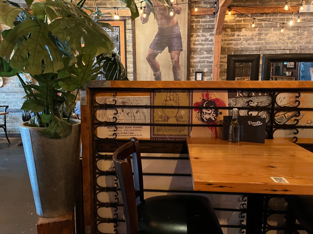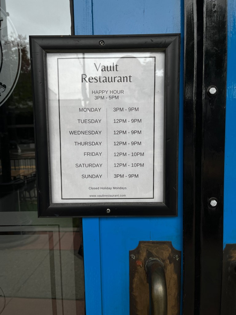 I really liked The Vault. If it was local to me, I would be a regular. The food is good, the tea is good, so is the lager. The staff were really nice and happy to explain the quirks of the building and even took a couple of photos of me there. It is called The Vault, because it used to be a bank and the bank vault is still there, just now it is part of the dining space.