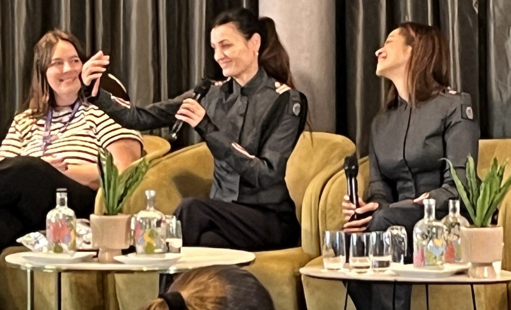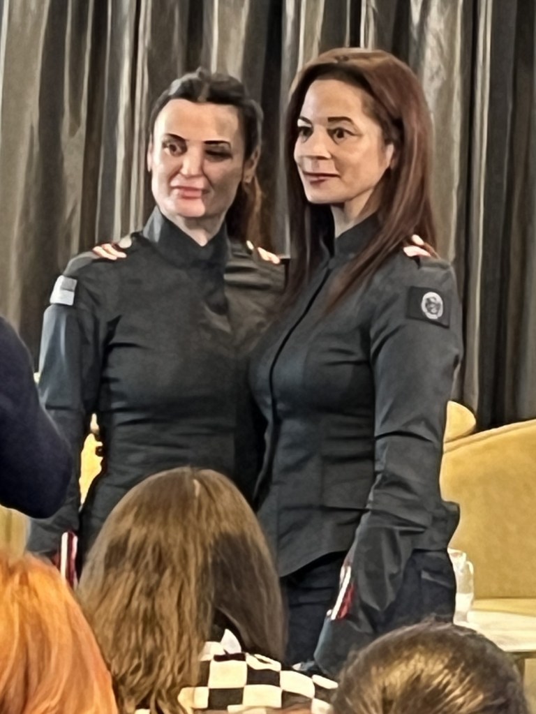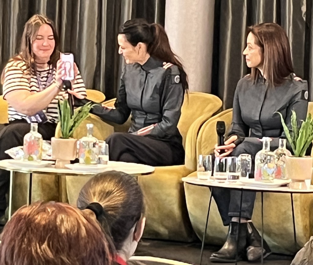 And what a moment it was. General Alder and General Bellweather in their army uniforms. I know Lyne had kept her general uniform, but I don’t know where they got Petra’s uniform from. But it made a huge impact that they dressed for us. This panel had an additional surprise for us. One of the staff came to the front with a mobile phone with Jess on Facetime, ready to join in.