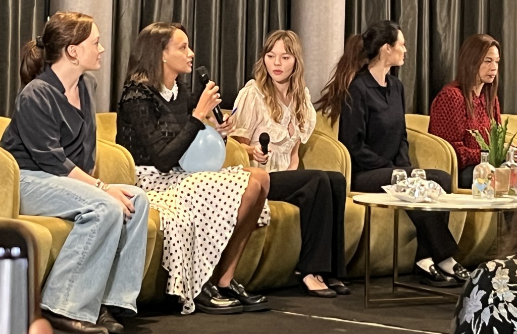 After lunch we had the games session. The cast were divided into two teams, Cat and Ashley against Taylor, Amalia and Jess. But Lyne replaced Jess for this. Both teams were joined by various members of the audience. This time it was a game of charades. This seemed to suit Taylor very well, she was immediately asking about if they were allowed to indicate how many words? Or how many syllables in each word? Amalia seemed not to understand the idea of syllables. Taylor was too hyped up to explain it.