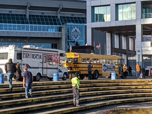 This was also evident with the protest buses, near the Whitecaps stadium. This is a behind the scenes shot from filming the protest. Below that are two photos of the same location from two years ago.