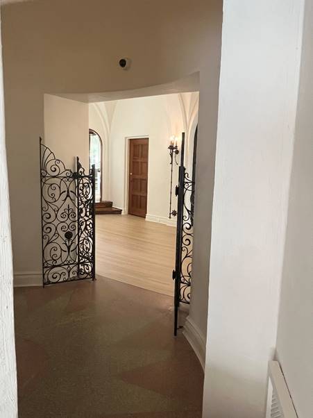 Although we were not able to go inside the building itself, it was possible to see inside from the porch. In the episode, we see Petra, her sister and Major Hoke walk through this area into the foyer. A little beyond this are the stairs.