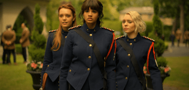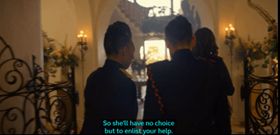 The Bellweather mansion front door is just as we saw it in the episode, when Petra and her sister welcome Major Hoke at the door and go inside.