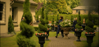 As well as the front porch, there was filming at the side of the building. The wedding itself and the dance tent were at the back of the building.