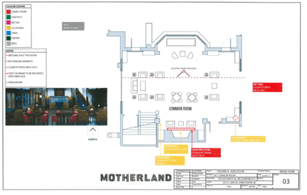 When they finished filming, the production department gave the Hycroft management the choice that the set designers could remove the frosting or leave it in place. The Hycroft management decided that they liked the privacy option and said the door frosting could stay. This is another example of changes made for the filming of Motherland, which have become permanent.
