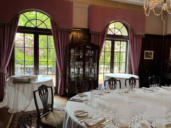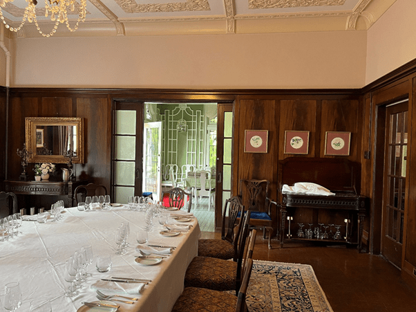 On returning home, I had another hunt through production notes and came across this, which I had missed earlier. It does say that the dining room is at Cecil Green Park House.
