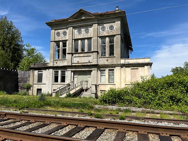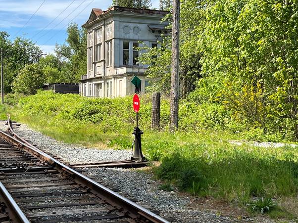 We met the owners of the building, who gave us permission to take photos and go on their land. The building is one of the historic electricity substations used to power the interurban railways. The railway track is still in use, albeit not very frequently. We were warned about the possibility of a train, but we didn’t encounter one.