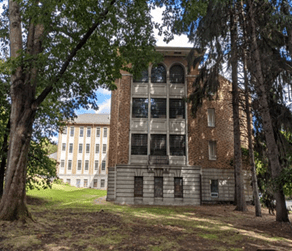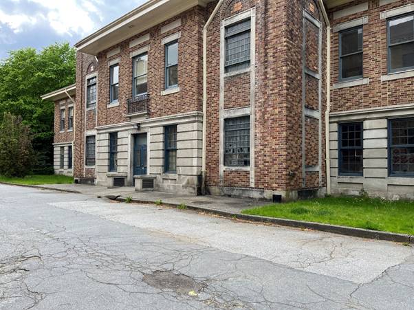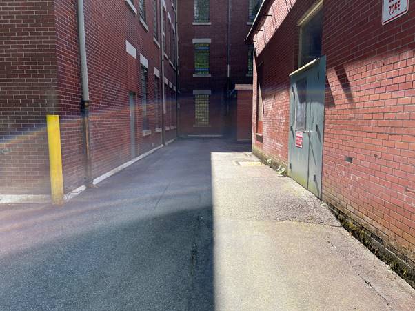 The covered walkway that we see the Unit pass is at the east end of Alder’s Office (East Lawn Building).