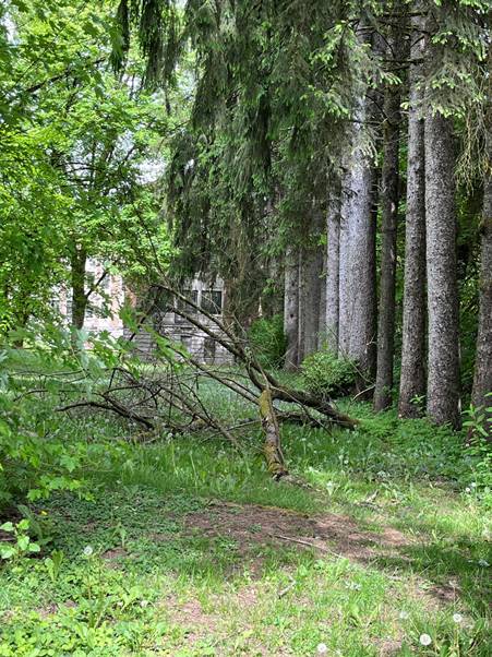 Cross over to the opposite of the (bonfire) clearing and enter the trees.