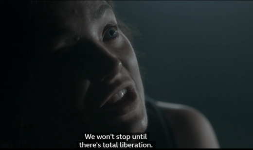 Scylla’s attitude and opinion of Alder are shown up when Alder comes to see her in the interrogation chamber. She blames Alder for the fact that witches have to surrender themselves to the military and fight wars whether they believe in them or not. She believes that she is fighting for the liberation of witches from some form of slavery. Despite everything she has gone through, she is strong enough and determined enough not to be cowed by Alder. All she has to fight back with are her words and beliefs, but fight back she does.