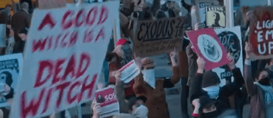 The protestors are making it clear that they do not want their daughters tested, but they want witches executed in line with so called ‘biblical truth’. We see these ‘biblical truths’ used again and again by Alban Hearst and the Camarilla as they try to justify their actions.