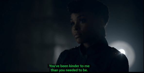 The part that might have really gotten to Anacostia is when Scylla says that she had been kinder to her than she needed to be. Then she simply says ‘Thank you’. That level of maturity and forgiveness after everything she has been put through meant that Anacostia could no longer even pretend that she saw Scylla as evil and deserving to die. She had found an integrity and a goodness in her that could not be ignored. Perhaps Alder’s order to send Scylla to a death camp could be ignored or worked around.