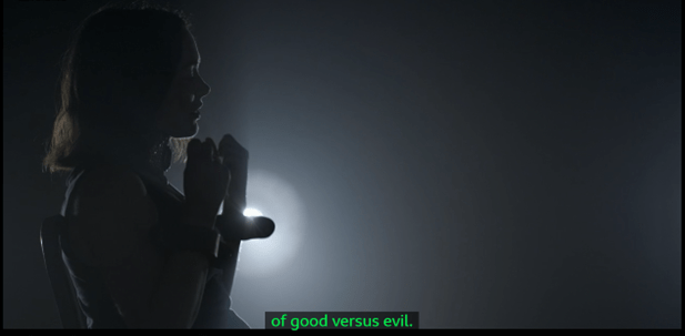 Anacostia tries to link with her, to see her mind, but at this point Scylla is strong enough to block her out. Anacostia leaves her with one of the sound boxes, probably seed 14, the seed of interrogation. Clearly this is a distressing experience. No food, certainly no sleep, but when Anacostia tries again Scylla is still strong enough to resist, even trying to headbutt her. Now it is a clear battle of wills between the two of them.