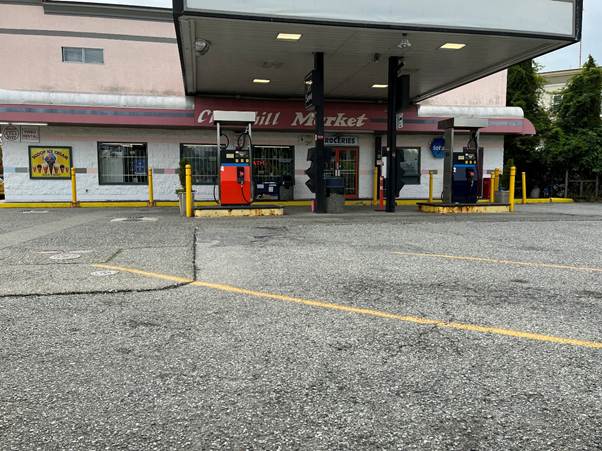 The van stopped to refuel there, at the pump on the right. You could get fuel there too. The ‘restrooms’ Abigail visited round the side of the building do not exist. The photo below shows what the side of the building really looks like.