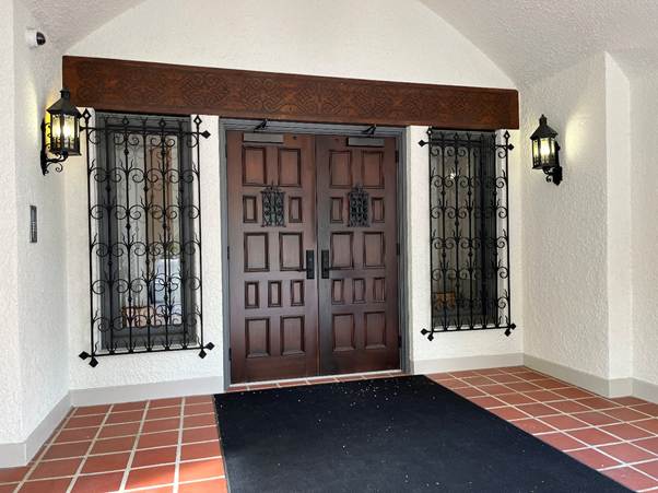 However the front of the building is untouched. When we visited, we had permission from the manager to take photos of the front of the building, but were not able to go inside. The privacy of the residents was paramount.