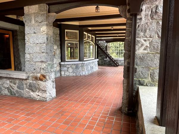 The back porch and terrace were used too, particularly in season 2. When Tally asked General Alder if she could tutor Penelope, the conversation took place here.